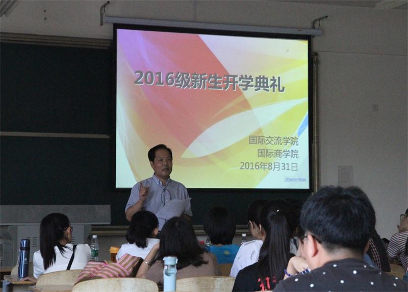 为了使新生尽快适应大学的学习环境与生活环境,对未来的大学四年有更明确的认识与规划,8月31日上午十点整,国际交流学院(国际商学院)在明水校区召开了2016级新生开学典礼。出席典礼的领导和老师有院长刘瑞波、党委副书记张红燕、院团委书记兼2016级新生辅导员王坤以及就业办负责人朱维霞,全体2016级新生参加了本次典礼,张红燕主持。