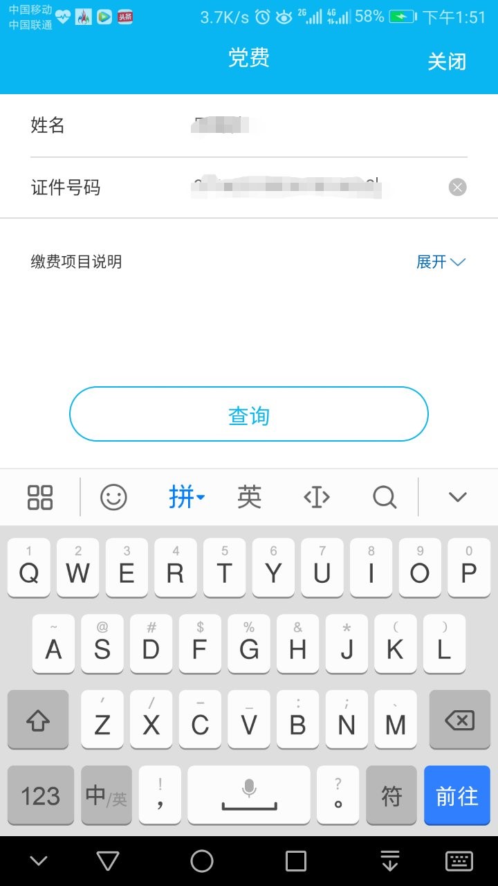 4、未持有建设银行卡党员(老版本手机不支持充值功能,如苹果4等),可以绑定农行、招行工资卡,然后点击钱包选择充值(根据党费充值,一定先充值,然后再缴费,多存的钱可以支取或下次缴费),再下拉直接选择党费,缴费地区“山东省济南市”,缴费单位找到“山东财经大学”下一步输入姓名及身份证号查询即可如果页面跳转显示所需缴纳金额,支付方式选择龙支付钱包支付,如果显示您没有未交费订单,则说明本期党费缴纳未开始。