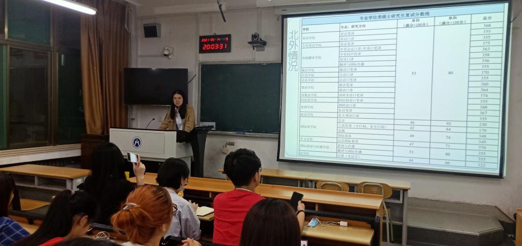 为了帮助低年级同学做好未来职业规划,对国内考研、出国读研等选择有明确的了解,提升同学们对就业的认知,帮助同学们明确自己的发展方向,5月14日晚,国际教育学院在舜耕校区2204教室举办了以“扬帆新征程,奋斗正青春”为主题的2021届汉语国际教育专业就业经验交流分享会,会上特别邀请了2021届优秀毕业生张珂琦、李晓、王珂、于丽洁、陆良媛、李婷、杨颖、王亚东、于康宁,分别针对考研、留学、就业三个方向进行了经验分享,2018、2019、2020级汉语国际教育专业的同学积极参加。